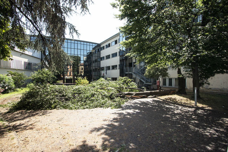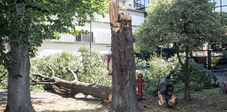 Violento temporale sulla città e allagamenti. Si schianta pianta al Vacchelli