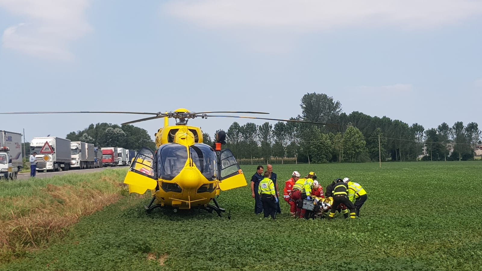 La Paullese è stata chiusa per consentire le operazioni di recupero, e si sono formate lunghe code. Intorno alle 11.20 l’uomo è stato finalmente estratto dalle lamiere. Subito gli operatori del 118 gli hanno prestato i primi soccorsi, cercando di stabilizzarne le condizioni, quindi è stato portato sull’elicottero e trasportato all’Ospedale di Cremona. E’ illeso invece l’autista del trattore, P.F., 33enne di Agnadello che lavora per la DVF Lavorazioni Agricole.