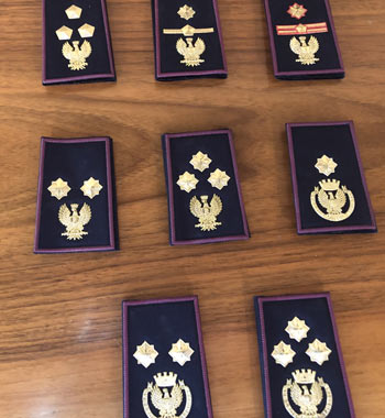 I distintivi uguali per tutti i ruoli differenziano le funzioni tecnico-scientifiche, tecniche e le attività professionali attraverso il diverso colore delle mostreggiature.