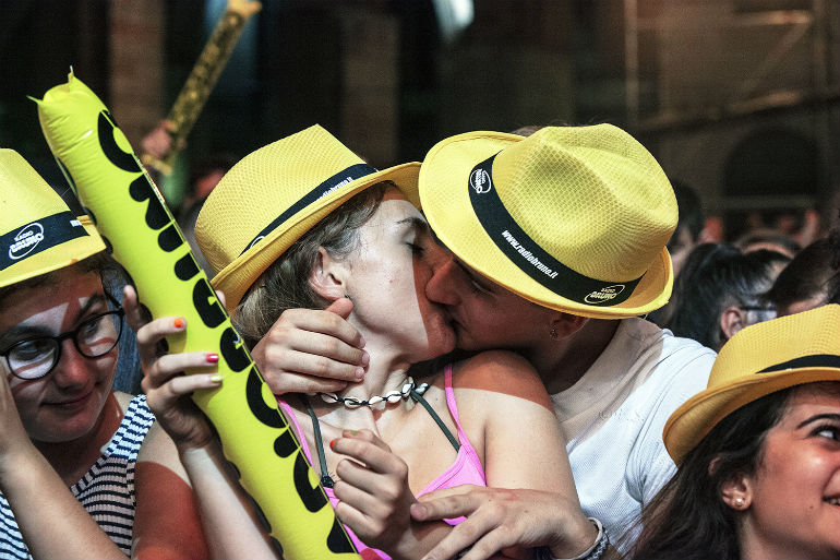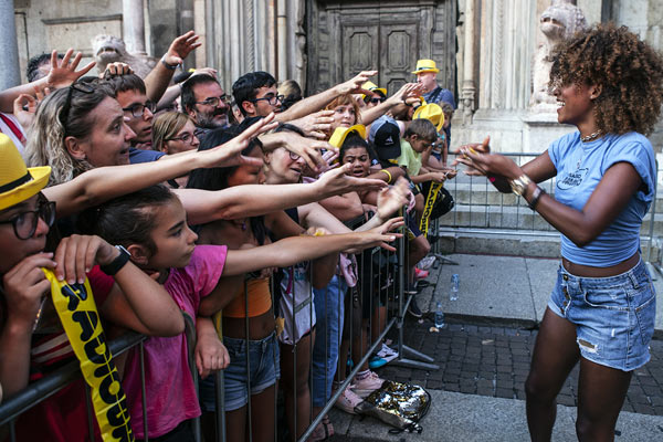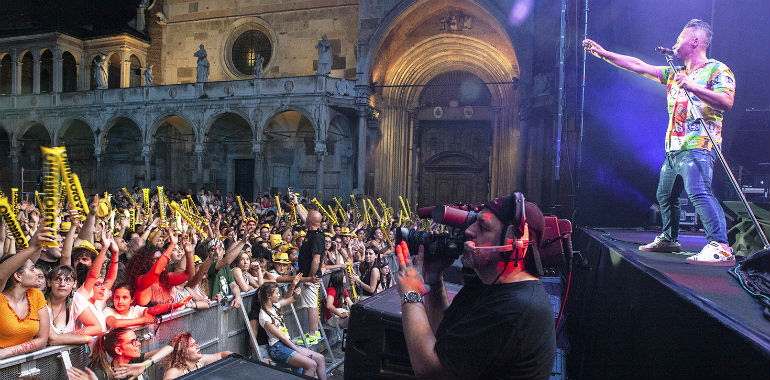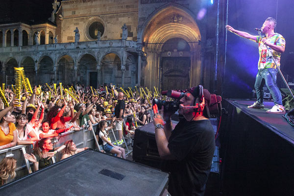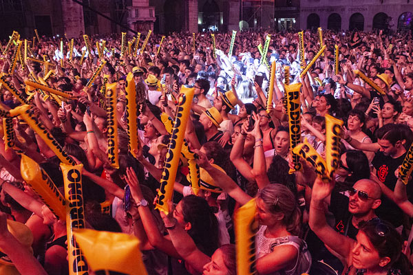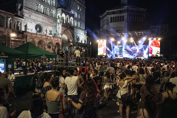 Piazza del Comune al completo già alle 19,30 per la tappa cremonese di Radio Bruno Estate, show che conclude i concerti di Acquedotte. Tra i primi ad esibirsi, Takagi & Ketra con Giusi Ferreri, Aiello, Elodie, Paolo Belli e la sua band. La serata caldissima non ha scoraggiato giovani e giovanissimi: presenti anche molti genitori che hanno accompagnato ragazzini di 10 – 12 anni, non solo da Cremona, ma anche dalle province limitrofe. Per alcuni di loro, la delusione di non essere riusciti ad entrare, visto il rapido esaurirsi dei quasi 3500 posti disponibili.