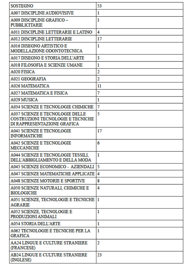 Circa 240 posti disponibili per docenti nella scuola secondaria di secondo grado in provincia di Cremona. Il dato complessivo di cattedre scoperte viene fornito dalla Federazione Lavoratori della Conoscenza Cgil che ha rielaborato i dati del Ministero dell’Istruzione per calcolare le disponibilità previste per le prossime immissioni in ruolo per l’anno scolastico 2019/2020. Si tratta però di valori non del tutto completi in quanto mancano dati di classi di concorso di indirizzo dei licei musicali. I numeri che preoccupano però sono i 53 posti liberi di sostegno, 17 per le discipline letterarie, 23 di lingua inglese, 5 di liuteria e 17 di scienze e tecnologie informatiche. Inoltre risultano scoperti 21 posti di personale amministrativo. I dati citati però, come spiega Laura Valenti segretaria dei sindacati scuola Cgil, potranno subire variazioni fino a fine agosto, quando verranno ufficializzate le cattedre e verranno chiusi tutti i concorsi e le procedure in atto. Anche le supplenze annuali verranno concordate entro il 31 di agosto, ma potranno esserci degli slittamenti.