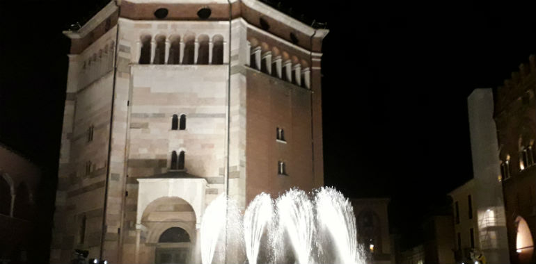 Grande spettacolo quello offerto da Padania Acque ieri sera in piazza del Comune, dove per l’ultimo dei Giovedì d’Estate organizzati da Comune e Botteghe del Centro è andato in scena lo spettacolo delle fontane danzanti, una sinfonia di colori aperta dalla Cavalcata delle Valchirie e proseguita sulle note di celebri brani del balletto classico. Spettacolo di acqua e di colori, con le coreografie di PosainOpera Ballet, sullo sfondo del battistero e di un cielo illuminato da lampi lontani, presagio di un temporale che, a parte un caldo vento, non è mai arrivato.