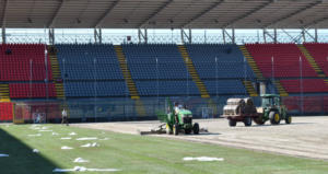 Allo Zini la posa del nuovo manto erboso in vista della Coppa Italia