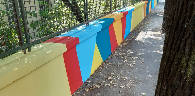 Sarà un ritorno a scuola colorato, il prossimo settembre, per i bambini della elementare Monteverdi e dell’asilo Agazzi di via Ticino. Lo street artist Marco Cerioli, su incarico del Comune, sta dipingendo il muro di cinta del complesso scolastico, già al centro di tante iniziative che coinvolgono il quartiere, oltre ai genitori, la direzione dell’IC2 e ovviamente il Comune. Il soggetto scelto per il muretto è astratto, a differenza di un’altra opera di Cerioli, i ritratti stilizzati di grandi viaggiatori dipinti sul muro delle ferrovie di via Vecchia Dogana. Qui invece prevale il motivo geometrico e i colori brillanti e caldi, più consoni all’infanzia che frequenta la zona.