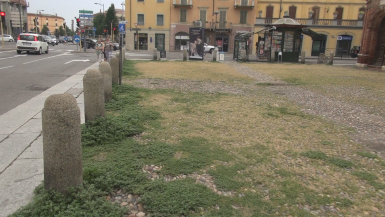 Erba alta e degrado in piazza San Luca: sos manutenzione