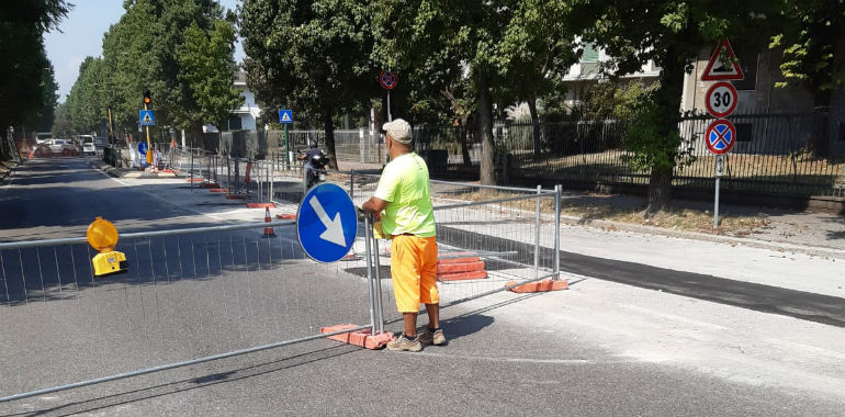 Dopo oltre un mese di lavori, cambia la viabilità in via Trebbia, nel tratto fra via Lugo e via Chiese, dove è stata rifatta la rete dei sottoservizi. Da questa mattina il cantiere è stato spostato dalla corsia adiacente alla scuola Virgilio a quella opposta. Le auto possono transitare come prima, ossia a senso unico da via Massarotti verso la tangenziale. I lavori in corso, che dureranno ancora circa 3 settimane, consentiranno anche di risolvere il problema degli allagamenti, che qui come in altre zone della città si presentano frequenti in occasione di forti acquazzoni. Gli scavi hanno evidenziato infatti l’intasamento delle caditoie (gli scoli dell’acqua piovana che si trovano sotto il cordolo del marciapiede), quasi completamente ostruite dalle radici degli alberi. Questi pozzetti saranno sostituiti con nuovi tombini a filo strada. Con l’occasione – hanno spiegato questa mattina i tecnici al presidente del quartiere 10 Matteo Tomasoni – verrà rifatto ex novo l’allaccio alla fognatura di un paio di condomini.
