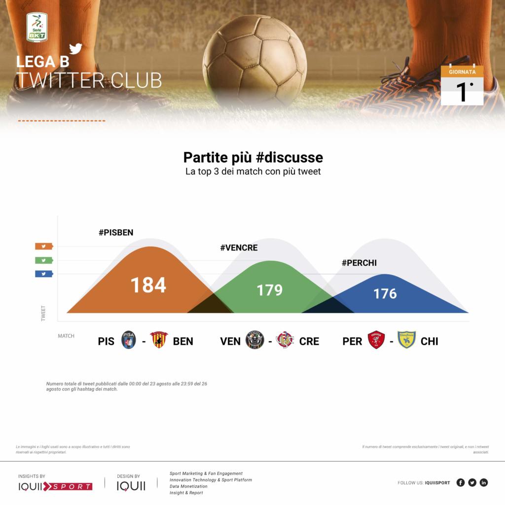 L’entusiasmo intorno alla Cremonese viaggia anche via social, in particolar modo su Twitter. E’ quanto emerge dallo studio diffuso dalla Lega di Serie B sui propri canali social, riportando l’analisi della società Iquii Sports. In particolare, la gara contro il Venezia è stata la seconda più discussa della prima giornata di Serie B come numero di tweet pubblicati dalle 0.00 del 23 agosto alle 23.59 del 26 agosto. In questo senso, Pisa – Benevento ha potuto benficiare di circa 24 ore in più, oltre ad essere la partita inaugurale del campionato. Il dato grigiorosso, pertanto, assume anche più valore.