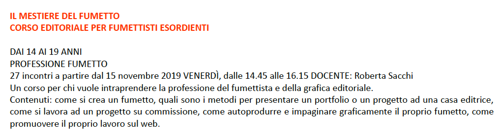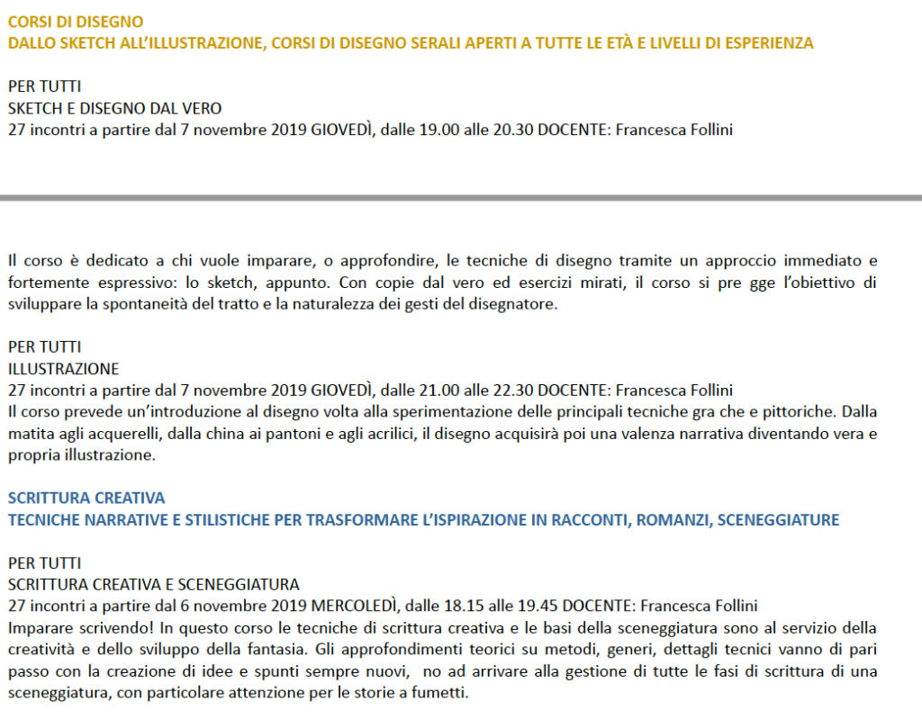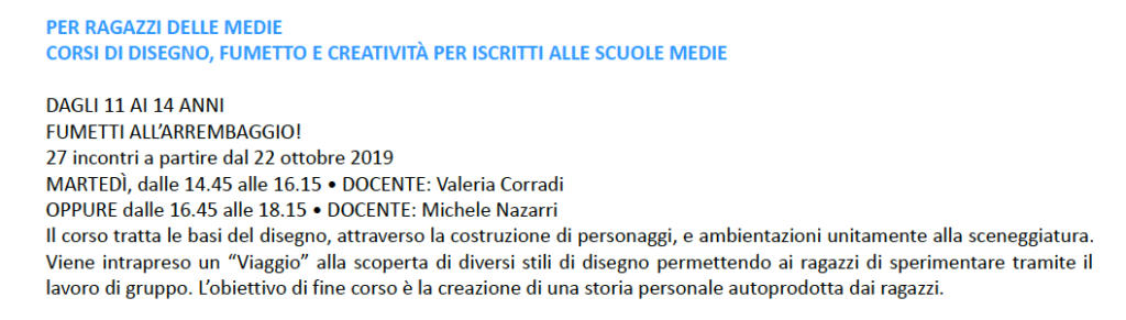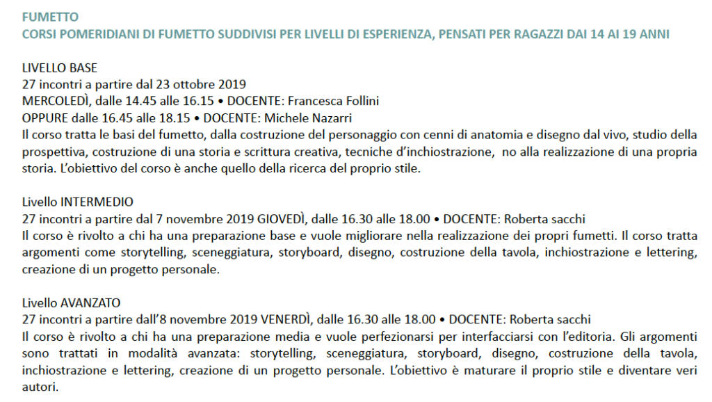 Centro Fumetto, sabato 14 la presentazione dei corsi 2019/2020