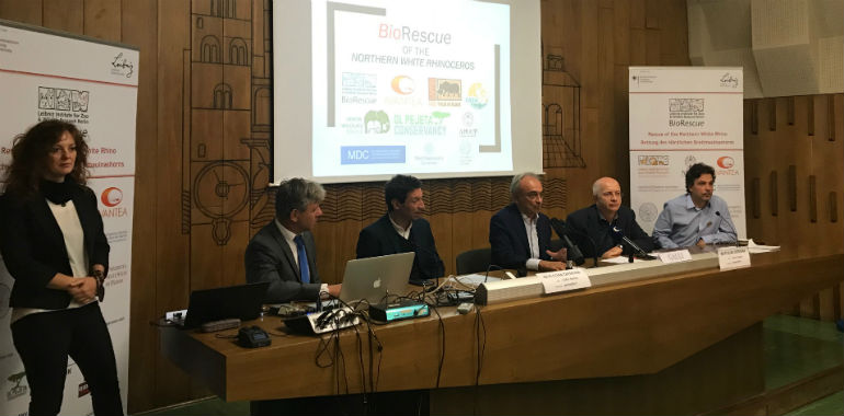 Presentato questa mattina in Camera di Commercio il progetto scientifico internazionale per garantire la sopravvivenza del rinoceronte bianco, specie in via di estinzione, di cui sopravvivono in stato di libertà, in Kenya, solo due esemplari femmina. Un progetto che ha per protagonista anche il cremonese Cesare Galli, del laboratorio Avantea, dove nei giorni scorsi è avvenuta con successo la creazione di due embrioni che saranno impiantati prossimamente. Alla presentazione, avvenuta alla presenza dei partner tedeschi e di diversa media internazionali, hanno preso parte il presidente della Camera di Commercio Giandomenico Auricchio e il sindaco Gianluca Galimberti.