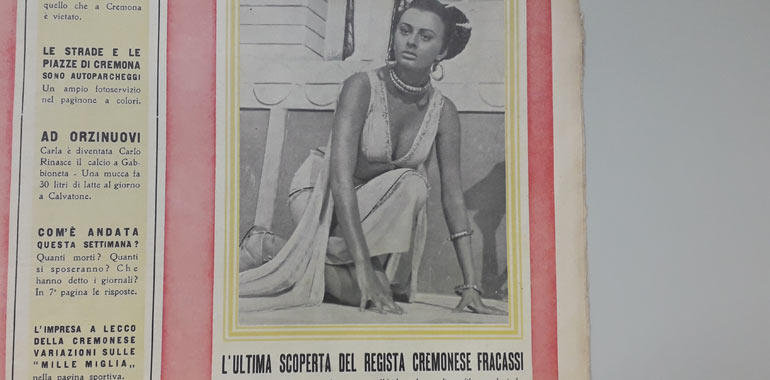 Sophia Loren compie oggi 85 anni. E’ la nostra diva del cinema per eccellenza e la maggior parte dei suoi anni li ha vissuti su set cinematografici in giro per il mondo. Simbolo del fascino mediterraneo nonchè un’icona di bellezza ed eleganza, Sophia ha sempre ammaliato il suo pubblico. La sua carriera vanta una filmografia lunghissima e piena di riconoscimenti, premiata con il primo Oscar nel 1962 per ‘La ciociara’ e trent’anni dopo per la carriera. Pochi sanno però che la Loren attrice è stata scoperta da un giovane regista cremonese, Clemente Fracassi da Vescovato. Lo ha raccontato Elia Santoro nel “Sabato Illustrato”, settimanale di attualità padana nell’edizione del 25 aprile 1953. Fracassi arrivò abbastanza presto al cinema, logico quindi trasferirsi a Roma per dar corso alla sua passione, prima come “ciacchista (l’addetto “al ciak, si gira”) per Mario Soldati (“Due milioni per un sorriso”, era il film). Divenne poi aiuto regista con Camerini e Poggioli. Arrivò quindi la guerra e nel ricominciare a barcare il lunario, Fracassi si improvvisò giornalista. Fino all’incontro con il produttore Carlo Ponti della Lux, la più grande casa di produzione italiana. Con lui organizzò “Vivere in pace” di Zampa, “Senza pietà” e “Mulino del Po” di lattuada, entrambi con la sceneggiatura di Fellini. Il suo primo film da regista fu “Romanticismo” con Amedeo Nazzari e Clara Calamai a cui fece seguire “Sensualità” con Marcello Mastroianni ed Eleonora Rossi Drago. Nel 1953 gli affidarono la regia di “Aida”, trasposizione cinematografica dell’opera di Verdi. Per il ruolo di Aida con la pelle ambrata, scelse una giovanissima Sofia Loren doppiata dal soprano Renata Tebaldi. La cantante ebbe modo di tessere le lodi della Loren, bravissima nei labiali tanto che neppure nei primi piani ci si accorse del play back. Il film uscì nelle sale italiane il 23 ottobre 1953, per poi approdare negli Stati Uniti l’anno successivo.
