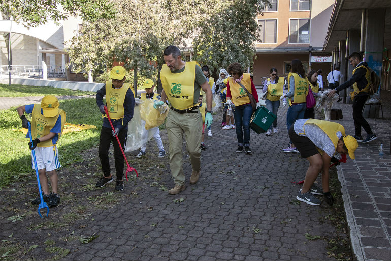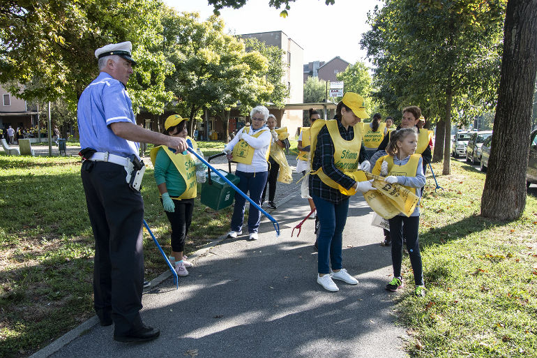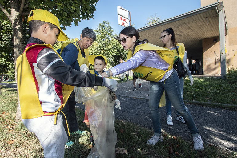 Si sono presentati in tanti, qualcuno anche da altri quartieri cittadini, questa mattina in piazza Aldo Moro al Cambonino per la nuova edizione di Puliamo il Mondo, iniziativa nazionale di Legambiente che a Cremona già da qualche anno il circolo VedoVerde ha voluto dedicare proprio a questo quartiere. Simbolo di convivenza multietnica, troppo spesso sotto i riflettori per la gestione incivile dei rifiuti da parte di alcuni residenti, ma oggi anche simbolo della voglia di migliorare l’ambiente in cui si vive. Sotto la guida dei responsabili del circolo VedoVerde, Giovanna Perrotta e Pierluigi Rizzi, degli operatori del Comune coordinati da Donatella Boccali, della Polizia Locale e con la presenza degli assessori Maurizio Manzi e Simona Pasquali, bambini e genitori hanno indossato pettorine e guanti e con i sacchetti dell’indifferenziata e della plastica hanno cominciato il giro delle strade del quartiere divisi in quattro squadre: la blu ha ripulito viale Cambonino, la gialla il parco Monti e gli anfratti attorno ai palazzoni Aler, la verde si è dedicata a via Panfilo Nuvolone e la rossa a piazza Aldo Moro e dintorni. I più ardimentosi si sono spinti ben oltre il sottopasso della tangenziale, in via Bredina.
