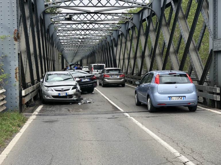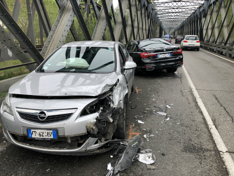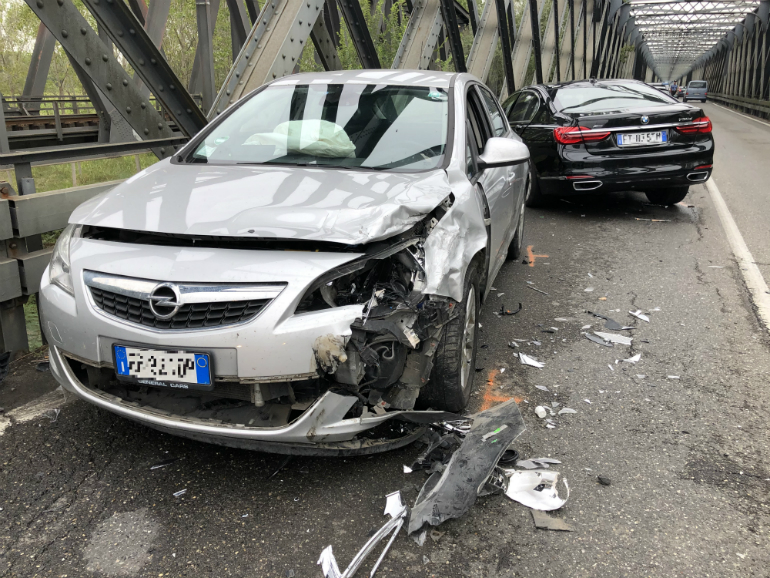 Schianto frontale sul ponte di Po, ferita una donna incinta