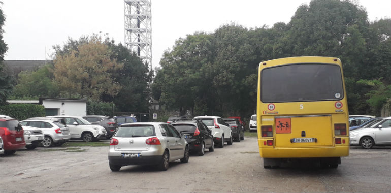 Intanto oggi, primo giorno del nuovo corso, il piazzale alle 16 si è presto riempito di auto, genitori e nonni in attesa dell’apertura del cancello. Da qui, si deve percorrere un centinaio di metri nel parco della scuola per arrivare fino al limite dell’edificio scolastico. Tra i genitori è circolato subito il suggerimento al Comune di sistemare le buche del piazzale. g.b.