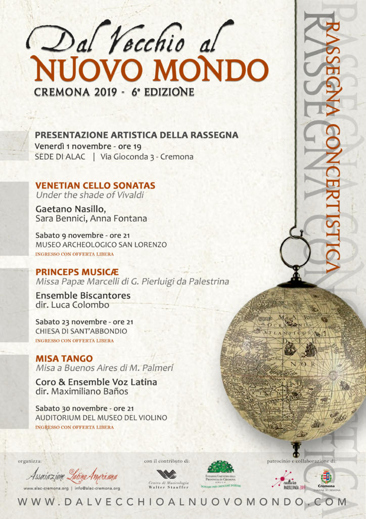 Ormai giunta alla sesta edizione, conferma che il pubblico di Cremona apprezza l’intreccio fra musica tradizionale e musica antica: è la rassegna ‘Dal vecchio al nuovo mondo’ promossa da ALAC Associazione Latinoamericana di Cremona, che a novembre torna con tre concerti ad ingresso con offerta libera. Il progetto intende esplorare quel ‘mestizaje’ (fusione) che trovò la massima espansione nel barocco latinoamericano, una fusione tanto inaspettata quanto fruttuosa fra musica nera, arte europea e culture precolombiane; ora quelle note sono pronte a risuonare nella città natale di Monteverdi e Stradivari.