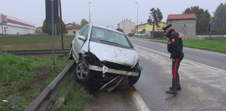 Esce di strada sulla via Mantova e si schianta contro manufatto in cemento: illesa
