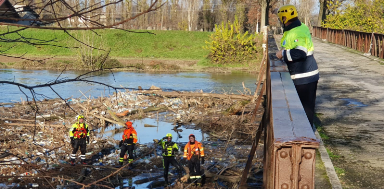 Cumulo di detriti contro il ponte di Isola Dovarese, Vdf e Protezione Civile al lavoro