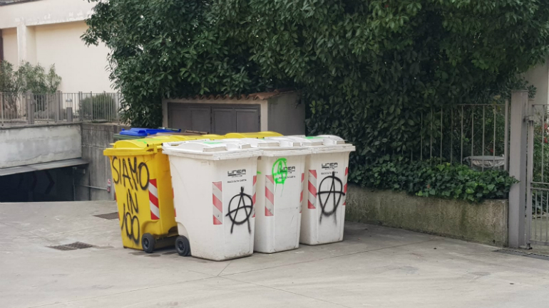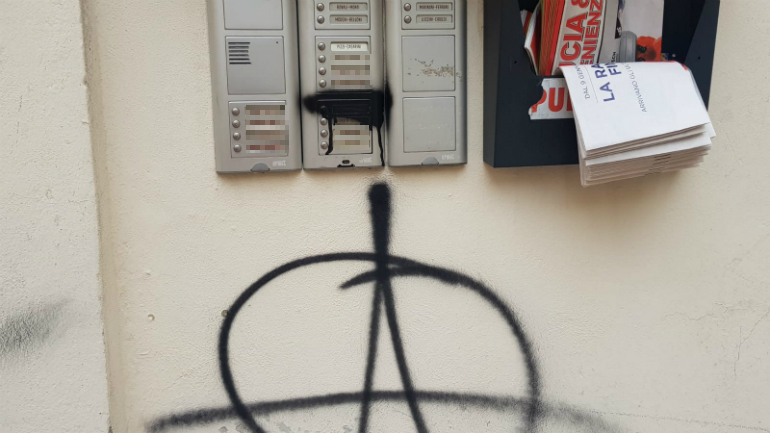 Vandali in azione: casa in via Dante imbrattata con scritte anarchiche
