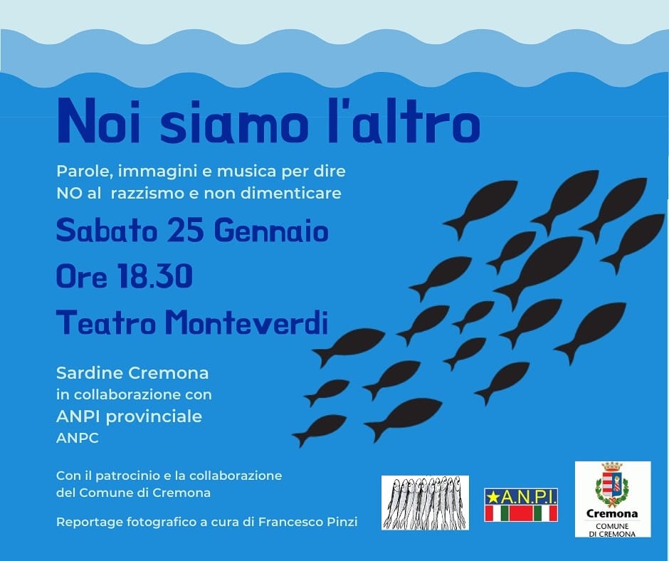 LA PRECISAZIONE DELLE SARDINE CREMONESI – A proposito della lettera di Paolo Carletti, le Sardine cremonesi precisano che il titolo dell’incontro del 25 gennaio è semplicemente ‘Noi siamo l’altro’ e non c’è nessun sottotitolo con riferimento a quel giorno, bensì solo l’indicazione della data dell’appuntamento. La scelta di organizzarlo di sabato e non di lunedì (27 gennaio, Giornata della memoria) è poi stata determinata dal fatto che lunedì gli studenti avrebbero fatto fatica a prendervi parte.