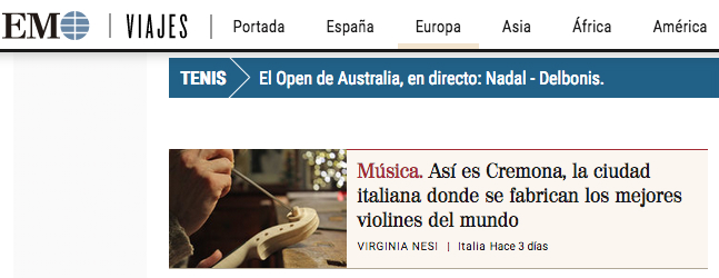 'El Mundo' elogia Cremona, 'culla mondiale della liuteria' con un reportage
