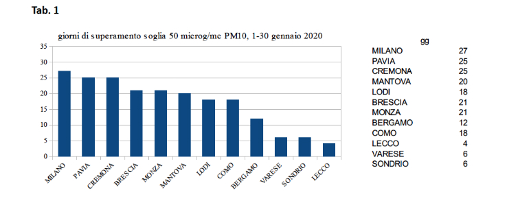 Insomma, gennaio 2020 è stato davvero un mese all’insegna dell’aria tossica, come sottolinea anche Legambiente Lombardia: “Continueremo a ribadire che la situazione è emergenziale fino a che non vedremo adottate misure davvero strutturali per migliorare la qualità dell’aria e della vita nella nostra regione” dichiara Barbara Meggetto, presidente di Legambiente Lombardia. “È necessario prevenire condizioni tali per cui in un solo mese la maggioranza dei cittadini lombardi respira tanta aria malsana quanta ne sarebbe consentita in un intero anno, a partire dalla promozione di una mobilità più sostenibile, soprattutto, ma non solo, nelle aree a più alta densità di traffico veicolare”.