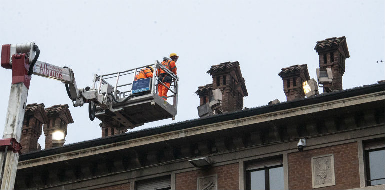 Illuminazione piazza del Duomo. Sopralluogo sui tetti Rotti 6 dei 12 fari installati