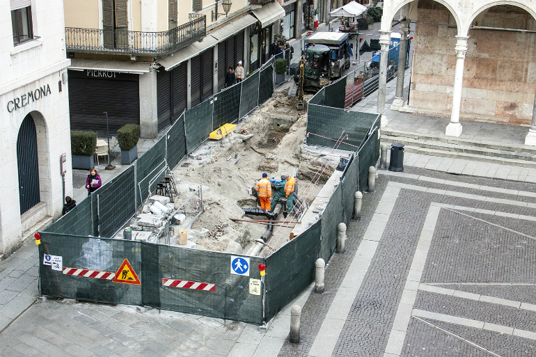Un prezioso ritrovamento accanto al Duomo di Cremona, praticamente davanti al bar Pierrot: mentre sono in corso gli scavi per permettere l’allaccio della cattedrale al teleriscaldamento cittadino è stata rinvenuta una antica tomba. Si tratta, nel dettaglio, di una tomba ‘alla cappuccina’. Viene chiamata in questo modo per la forma che ricorda il cappuccio dei frati: guardandola in sezione, infatti, mostra una forma triangolare. Sul posto c’è l’archeologo Gianluca Mete per conto della sovrintendenza di Cremona, Mantova e Lodi. Altri ritrovamenti simili si verificarono già tra il 1978 e il 1980: si tratta di tombe risalenti al decimo o undicesimo secolo, quindi antecedenti alla costruzione del Duomo. Probabilmente sono da ricondurre al camposanto delle due chiese di Santo Stefano e Santa Maria, che furono demolite per dare inizio ai lavori di costruzione della cattedrale. Una sorpresa che potrebbe non essere l’unica, in quanto si stanno arrivando a scavare alcune zone della Cremona sotterranea che finora non erano mai state esplorate, ma il sovrintendente Gabriele Barucca rassicura: “E’ un ritrovamento previsto, verranno condotti dei rilievi ma ad ora non si prevedono ritardi nel cantiere”. E chissà che non sia la volta buona per trovare anche il famoso passaggio segreto che collegherebbe direttamente alcune abitazioni del centro con la cattedrale.