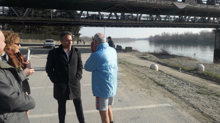 Nuovo attracco fluviale per imbarcazioni da diporto, e a pochi metri di distanza la ciclovia VenTo che passo dopo passo collegherà Torino con Venezia. Sta procedendo la valorizzazione del lungo Po nel tratto cremonese e oggi, appena prima del convegno sulla rigenerazione urbana organizzato dal vicesindaco Andrea Virgilio, è stato fatto un sopralluogo in zona canottieri da parte dello stesso Virgilio, dell’assessore regionale al Territorio Pietro Foroni e del direttore dell’Aipo Luigi Mille. Presenti inoltre gli armatori e il presidente dell’Associazione delle canottieri Maurilio Segalini. Proprio l’Aipo, agenzia interregionale per il fiume Po, provvederà alla redazione del progetto per il tratto di ciclabile che passerà lungo la strada alzaia davanti alle canottieri, e pochi metri più in giù, nell’alveo tra ingresso del Dopolavoro ferroviario e canottieri Bissolati, verrà realizzato il nuovo attracco, un investimento da 550mila euro circa, cofinanziato dalla Regione per 400mila e per la restante parte dal Comune (bando Lombardia To Stay). Oggi, in particolare, è stata ufficializzata la consegna da parte di Aipo al Comune di aree demaniali per circa 70mila mq, dal mandracchio fino al parco del Po, dove si svolgono gli eventi estivi: al Comune spetterà la manutenzione della via alzaia e pertinenze, oltre che del parco; all’Aipo invece la manutenzione della banca arginale e le pratiche per le concessioni demaniali in alveo. Più nello specifico, il Comune dovrà mantenere quanto acquisito costantemente in condizioni di ottima agibilità, facendosi carico di qualsiasi danno che dovesse derivare dall’utilizzo a cui saranno destinate le aree, inclusa l’attuazione di tutti i provvedimenti che all’atto esecutivo Aipo riterrà necessari nei riguardi della salvaguardia del buon regime idraulico del Po, delle opere idrauliche e delle proprietà demaniali. Rimangono a carico di Aipo gli interventi di manutenzione ordinaria e straordinaria della difesa degli argini.