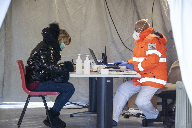 Un parcheggio dedicato a quanti si presentano in ospedale a fare il tampone, due tendoni montati all’esterno per filtrare gli ingressi, protezione civile e forze dell’ordine schierate: una situazione quasi surreale quella che si respira presso il nosocomio di Cremona, dove una delle due aree di sosta esterne è presidiata dagli agenti di polizia municipale (presente anche il comandante, Pierluigi Sforza), che lasciano entrare soltanto chi deve fare il tampone per verificare la presenza di eventuale coronavirus. Chi parcheggia lì viene indirizzato ai due tendoni montati proprio davanti alla struttura, dove i pazienti in arrivo vengono filtrati: per chi infatti presenta sintomi sospetti o chi deve effettuare controlli specifici legati all’epidemia, esiste un protocollo di intervento apposito. Gli altri pazienti, con problemi di tipi diverso, vengono invece indirizzati ai normali canali. Questo anche per evitare che i pazienti con sospetto coronavirus vengano a contatto con gli altri.
