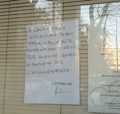 Ma anche senza arrivare a soluzioni tanto drastiche come la chiusura per un periodo di tempo indeterminato, altre attività hanno ridimensionato le aperture al pubblico, in considerazione del calo di passaggi in città. E’ il caso del ristorante Ariston in via Manzoni, che annuncia di sospendere l’attività per qualche giorno; o della vicina agenzia Manpower che invita a telefonare o a rivolgersi al sito web; o ancora del bar Stradivari, sempre in via Manzoni, che è chiuso per ferie.