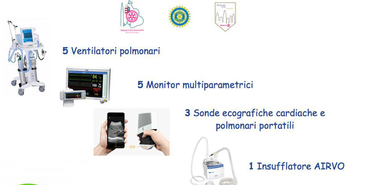 In relazione all’emergenza sanitaria legata alla diffusione del virus SARS-CoV-2 e al crescente numero di cittadini che vanno sviluppando la sindrome covid-19 in forma tale da richiedere l’ospedalizzazione, i Rotary Club del Gruppo Stradivari, con il supporto dell’Inner Wheel Cremona, dei Rotaract Club Cremona e Soresina e di tanti cittadini, hanno voluto sostenere l’attività dell’ U.O. Pneumologia dell’Ospedale Maggiore di Cremona, chiamato insieme ai tanti altri reparti coinvolti, ad un lavoro ben superiore alla normalità. In particolare l’impegno dei Club della famiglia rotariana si è concretizzato con l’acquisto diretto di cinque monitor paziente utili a monitorare le funzioni vitali dei pazienti, cinque ventilatori meccanici ed un insufflatore per la terapia dei pazienti con gravi difficoltà respiratorie nonchè tre ecografi portatili di ultima generazione (due polmonari ed uno cardiaco) utili alla diagnosi e monitoraggio delle funzioni vitali dei pazienti ed alcuni presidi di protezione individuali. Il contributo totale del Service è di circa 90000 euro e si concluderà nell’arco di pochi giorni. Il Rotary da sempre è sensibile alle tematiche della prevenzione e cura delle malattie, impegnandosi a livello locale e globale per concretizzare azioni di service in tale ambito. Anche in questo difficile momento, abbiamo voluto immediatamente dare il nostro contributo concreto affinché il nostro Ospedale possa erogare il maggior numero possibile di interventi terapeutici. L’impegno dei Rotary del gruppo Stradivari non si ferma: allo studio un nuovo progetto di Service in collaborazione con la Round Table Cremona. Rotariani, Rotaractiani e Socie dell’Inner Wheel, unitamente ai cittadini che hanno voluto prendere parte a questo progetto, esprimono riconoscenza ed ammirazione a medici, infermieri, odontoiatri, farmacisti, personale sanitario ed ausiliario nonchè alle Istituzioni, ai Sindaci, alle Forze di Polizia ed alla Protezione civile per l’impegno e l’abnegazione dimostrata in questa grave emergenza.