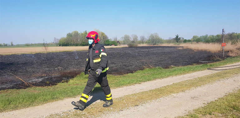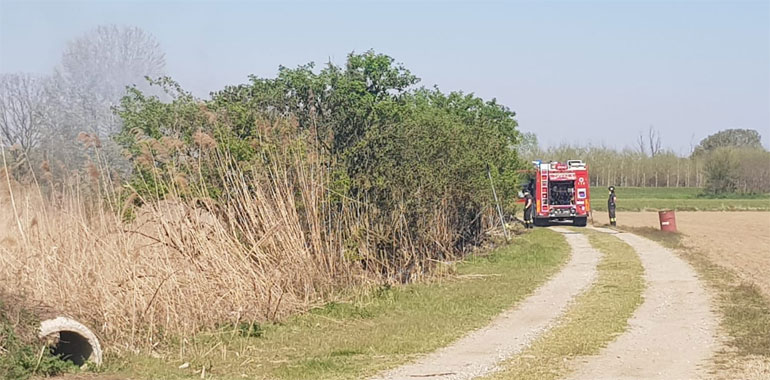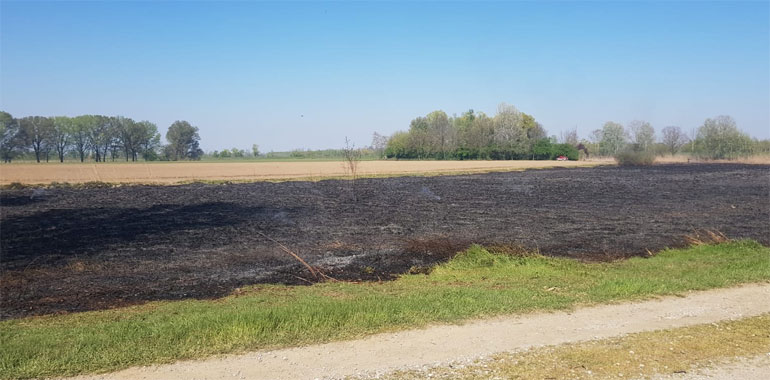 Gabbioneta Binanuova, a fuoco un ampio canneto del Parco Oglio Nord