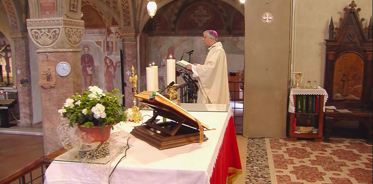 La Messa domenicale trasmessa da Cremona 1 dal Santuario della Fontana di Casalmaggiore, è stata la prima tappa del cammino mariano nel territorio voluto dal vescovo Napolioni. “Ci facciamo insieme pellegrini al santuario della Fontana a Casalmaggiore – ha detto in apertura il vescovo Antonio – dove i cappuccini accolgono noi come i tanti pellegrini che arrivano, un pellegrinaggio anche il nostro – ancora chiusi nelle case – che esprime il senso della vita”.