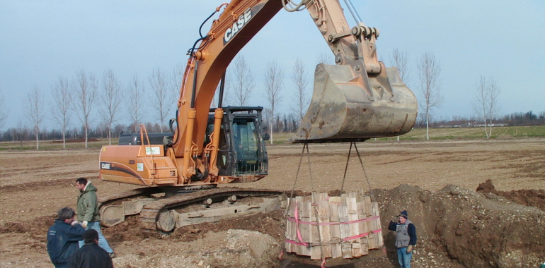Quando, nel 2007, iniziarono gli scavi per il livellamento del campo della Venina a Isengo, il primo importante ritrovamento archeologico che venne a luce fu un antico pozzo. Poi seguirono altre numerose scoperte che testimoniarono la presenza di un vasto insediamento celtico-romano dei primi secoli dopo Cristo. Poiché tutto andava distrutto, il Gruppo Archeologico Aquaria chiese ed ottenne di poter recuperare questo pozzo da mettere in mostra a memoria dei ritrovamenti. La struttura venne prelevata e consolidata, ma rimase per anni nel magazzino comunale di Via Melotta.