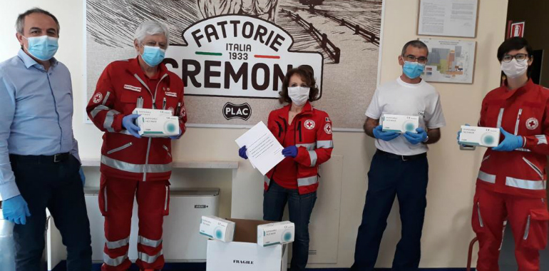 Venerdì 15 maggio la presidentessa della Croce Rossa di Cremona Loredana Uberti, con una piccola delegazione, si è recata presso la sede della Latteria Plac – Fattorie Cremona – a Dosimo per ritirare 1500 mascherine chirurgiche donate con il contributo dei dipendenti della Latteria. Un gesto di solidarietà e di vicinanza, che i lavoratori hanno voluto fare verso chi in questi mesi si è speso senza risparmiarsi- “Non ci sono parole che possano esprimere la nostra gratidutine per il vostro instancabile e unico lavoro” si legge nel biglietto che accompagnava la donazione, firmato dai dipendenti. “Ogni vita salvata o persona aiutata è come un abbraccio che dona forza e speranza per un futuro migliore”.