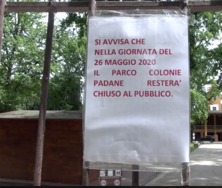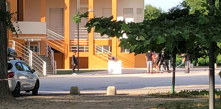 Una musica orecchiabile, il classico tormentone estivo percepito in tutta la zona del parco al Po, le Colonie Padane chiuse per un giorno ma con diverse macchine parcheggiate all’interno. In via Lungo Po Europa una macchina della polizia locale e dietro la cancellata una troupe intenta a fare delle riprese… e poi nitida la voce del cantante Francesco Gabbani.