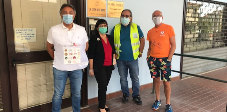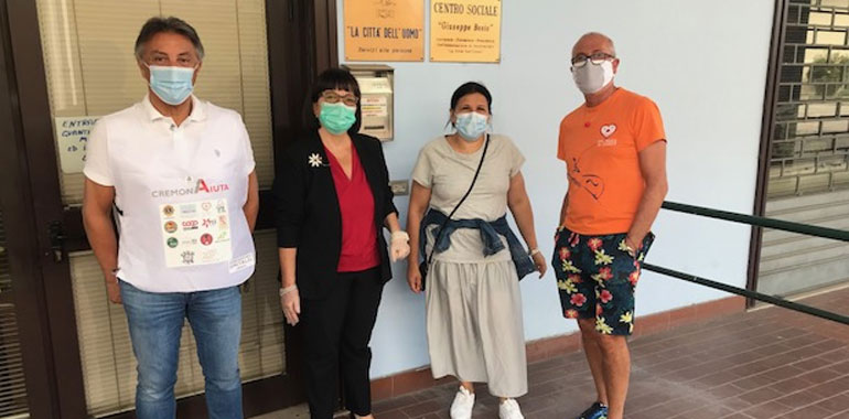 Proseguono gli incontri dell’Assessore alle Politiche Sociali e Fragilità Rosita Viola con i volontari di CremonAiuta, un’esperienza straordinaria, un coordinamento di associazioni e singoli volontari, organizzato dal Comune di Cremona con i referenti dei Servizi Sociali e della Protezione Civile, per dare risposte a bisogni primari durante l’emergenza e a tanti servizi a domicilio. In questa occasione l’Assessore ha incontrato Giuseppe Ballestriero e Maurella Manfredini de La Città dell’Uomo, Gianpietro Mariotti del Lions Club Torrazzo di Cremona e Silvio Bonaldi dell’Associazione Dal Naso al Cuore.