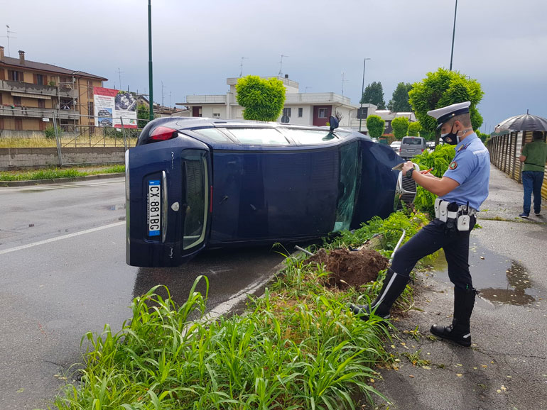 Pauroso incidente, fortunatamente senza gravi conseguenze, nel primo pomeriggio di mercoledì in via della Vecchia Dogana, dove un’auto è finita ribaltata sul ciglio della strada. Erano circa le 15.30 quando una Fiat Punto, condotta dal 32enne B.M. non ha rispettato il segnale di Stop posto all’intersezione tra via Mosconi e via della Vecchia Dogana, scontrandosi con una Lancia Musa condotta da T.E., 23 anni, che proveniva da via Persico con direzione Stazione. Quest’ultima a causa dell’impatto si è ribaltata e ha abbattuto una pianta.