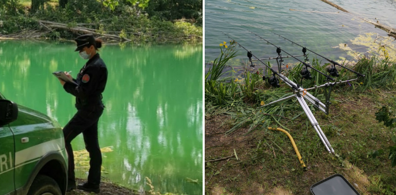 Accesso abusivo a laghi artificiali, pesca senza la prevista licenza, utilizzo di olree tre canne da pesca in attività dilettantistica, ltilizzo di strumenti vietati, tipo avvisatori acustici, carpfishing in periodo di divieto e utilizzo di esche-pasture in periodo di divieto pesca alla carpa: queste le violazioni riscontrate nell’ultimo periodo dai Carabinieri Forestali di Cremona e Crema nel corso di una serie di attività a difesa della biodiversità delle matrici acquatiche, tutelate da precisa normativa anche da Regione Lombardia. Sono sette le sanzioni elevate nell’ultimo mese. Sono inoltre state sequestrate canne da pesca e altra strumentazione.