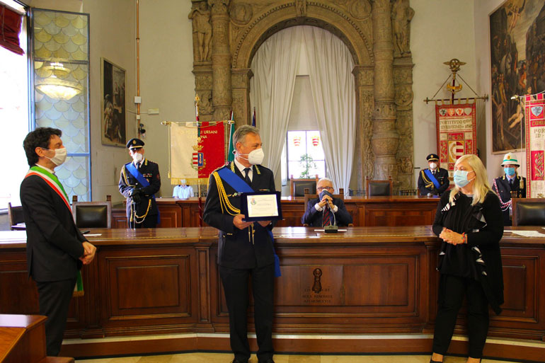 Ricordato questa mattina, nella Sala dei Quadri di Palazzo Comunale, il 160° anniversario di fondazione del Corpo di Polizia Locale del Comune. Una cerimonia svoltasi in forma sobria ed essenziale, nel pieno rispetto delle misure di contenimento del contagio da Covid-19, alla quale hanno partecipato il Prefetto Vito Danilo Gagliardi e il Presidente del Consiglio Comunale Paolo Carletti.
