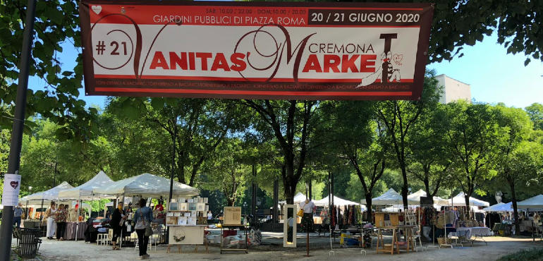 Seconda e ultima giornata per il Vanitas’ Market a Cremona non nella solita location sotto la Galleria ma, per rispettare le regole del distanziamento sociale e dell’igiene contro la diffusione del Covid 19, ai Giardini di Piazza Roma. Il bacio, quanto meno virtuale, è il tema dell’edizione 21 e il Vanitas’, evento creato dalla cremonese Elisa Boldori, è un’occasione concreta che dimostra la voglia e la volontà di ripartire con speranza ed entusiasmo.