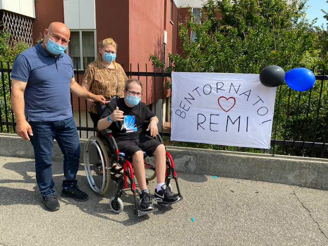 Nato 33 anni fa con la sindrome di Down, Remigio Quercia è tornato oggi alla vita: ha sconfitto il Covid19 dopo oltre tre mesi di battaglia. Il ricovero all’ospedale Maggiore, la Terapia Intensiva, le cure alle Ancelle della Carità: questa mattina, mamma e papà, anche loro guariti dal Coronavirus, lo hanno riportato a casa.