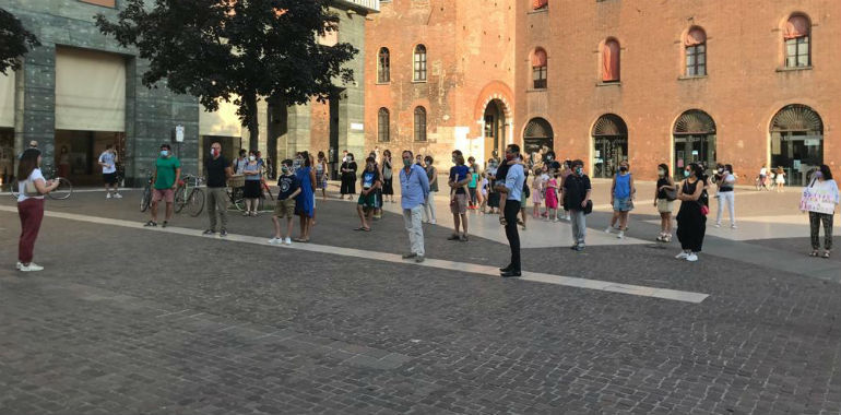 E’ bastato il passaparola via WhatsApp per portare in piazza almeno quaranta mamme con e senza bambini, per far presente alla città e alle istituzioni che nella programmazione del prossimo anno scolastico è necessario sentire anche la loro voce. Una manifestazione organizzata in pochi giorni, in una piazza Stradivari rovente, oggi pomeriggio alle 18,30, ma che ha colto nel segno, come spiega Francesca Gazzina, organizzatrice insieme a Zohreh Kalamian. “Con questo flash mob vorremmo sottolineare che in questa fase di riorganizzazione delle scuole che vede coinvolti gli enti locali e i dirigenti scolastici, è necessario coinvolgere anche i genitori di bambini e ragazzi, la cui presenza nei luoghi della programmazione è fondamentale. I nostri figli hanno bisogno di salute fisica ma anche psicologica; le fasce d’età 0 – 6 anni e 6 – 13 anni, in particolare, hanno una socialità molto diversa dai ragazzi più grandi, la scuola spesso è il loro unico momento di socialità. Costringerli alla distanza va evitato, pur attenendoci il più possibile alle linee guida sanitarie, vorremmo che la possibilità di interagire tra compagni ed insegnanti sia garantita”.