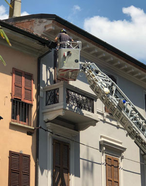 Intervento dei vigili del fuoco, nel primo pomeriggio di oggi, in corso Garibaldi a Cremona a causa di un cornicione pericolante. Con l’autoscala, gli uomini del 115 si sono issati fino al tetto e hanno messo in sicurezza il pezzo di cornicione che rischiava pericolosamente di staccarsi.