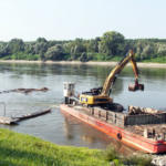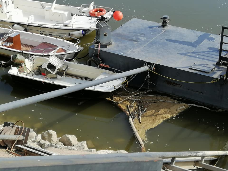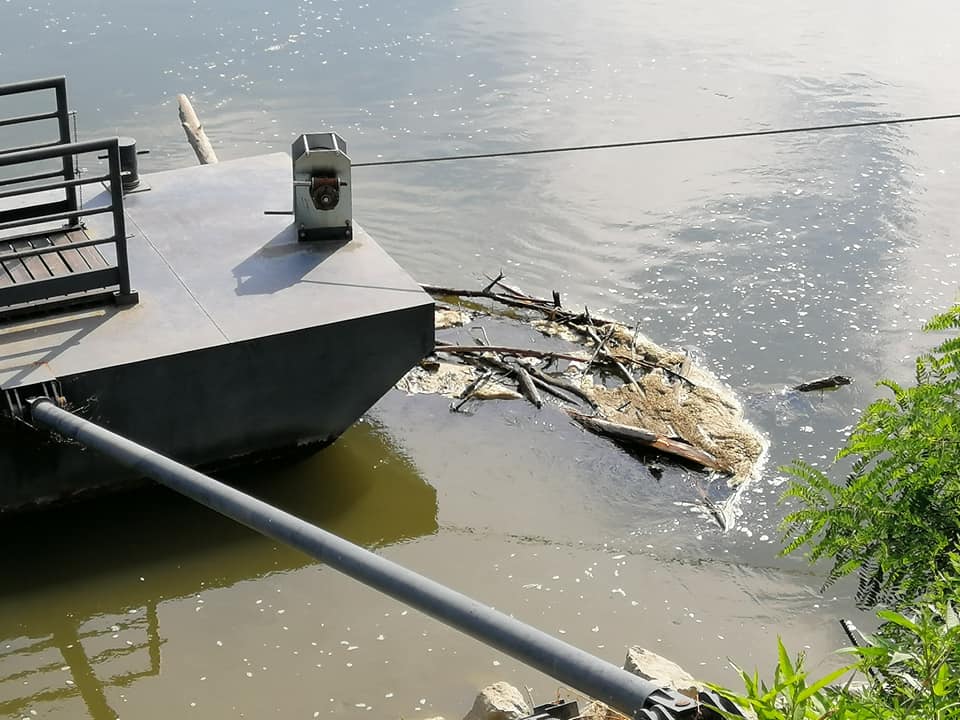 Alcuni dei detriti rimossi dal ponte in ferro incagliati all'attracco di San Daniele Po