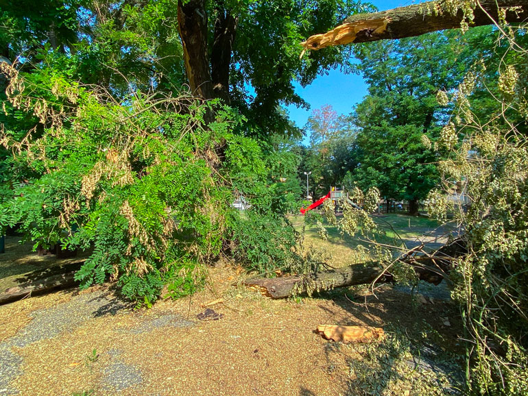 Parco scuola Bissolati, alberi spezzati e asfalto sconnesso Verde, stanziati altri 130mila €