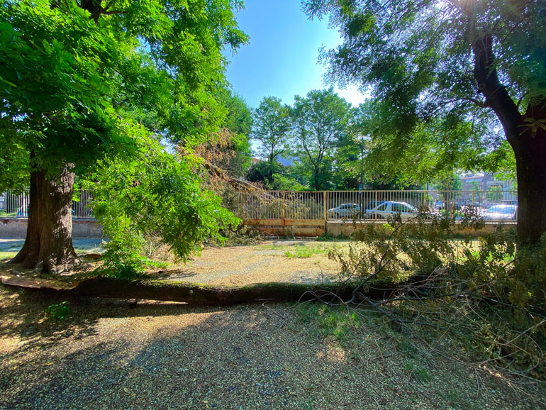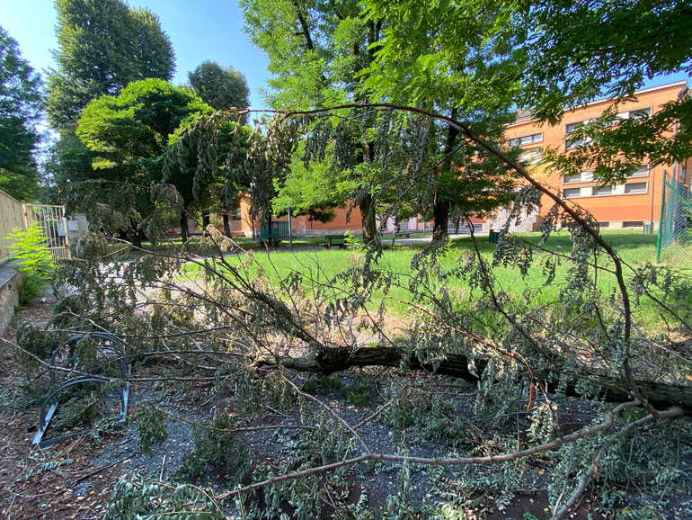 Parco scuola Bissolati, alberi spezzati e asfalto sconnesso Verde, stanziati altri 130mila €