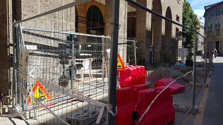 A innalzare la situazione di degrado è la presenza, ormai da mesi, di un cantiere proprio a ridosso della Galleria: “Lo hanno aperto poco prima del lockdown e ora sono almeno tre mesi che è tutto fermo. Crescono le erbacce intorno e porta via diversi posti auto, ma sembra che la cosa non interessi a nessuno, anche se deturpa ulteriormente la bellezza del nostro centro” conclude il gioielliere.