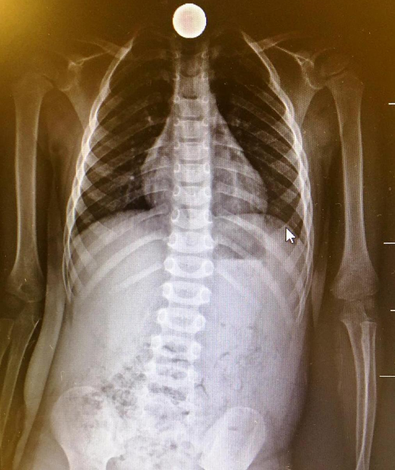 Durante la visita non emerge niente di particolarmente preoccupante, non vi erano segni di difficoltà respiratoria, in gola non si vede nulla. Quel sospetto, però, va assolutamente fugato. Per questo si procede subito con l’effettuazione di una lastra. Ed ecco che la moneta appare, nitida, “fra le tonsille e la laringe (uno spazio delicato di circa tre centimetri)”, come spiega Claudio Cavalli (Direttore UO Pediatria Aziendale), che aggiunge: “Era inserita a mo’ di salvadanaio, dritta dritta, come si vede dall’immagine radiologica. Bisogna agire in fretta, abbiamo pensato, perché se si mette di traverso, possono insorgere complicanze, anche serie”.