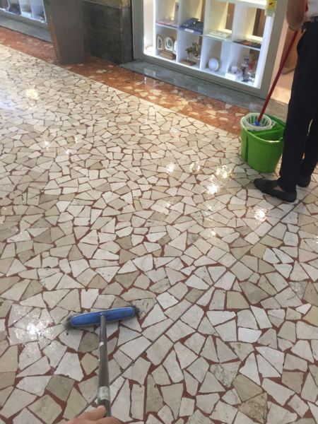 La violenta pioggia del pomeriggio di sabato ha causato copiose infiltrazioni nella parte centrale di galleria XXV aprile. Nelle foto, il titolare della gioielleria Barresi alla prese con stracci e spazzoloni per eliminare l’acqua. La cupola centrale del fabbricato non ha retto alla violenza dell’acquazzone che dalle 16 ha cominciato a battere sulla città, continuando, con alti e bassi, fino alle 18,30. In città, oltre all’allagamento del sottopassaggio di via Eridano non sono state registrate particolari criticità.
