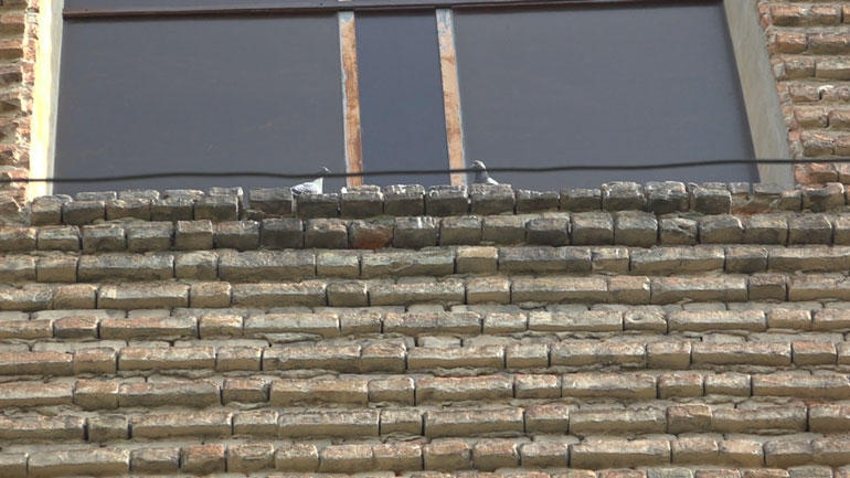 Calcinacci a S.Imerio, la colpa è dei piccioni: montata impalcatura per accesso sicuro